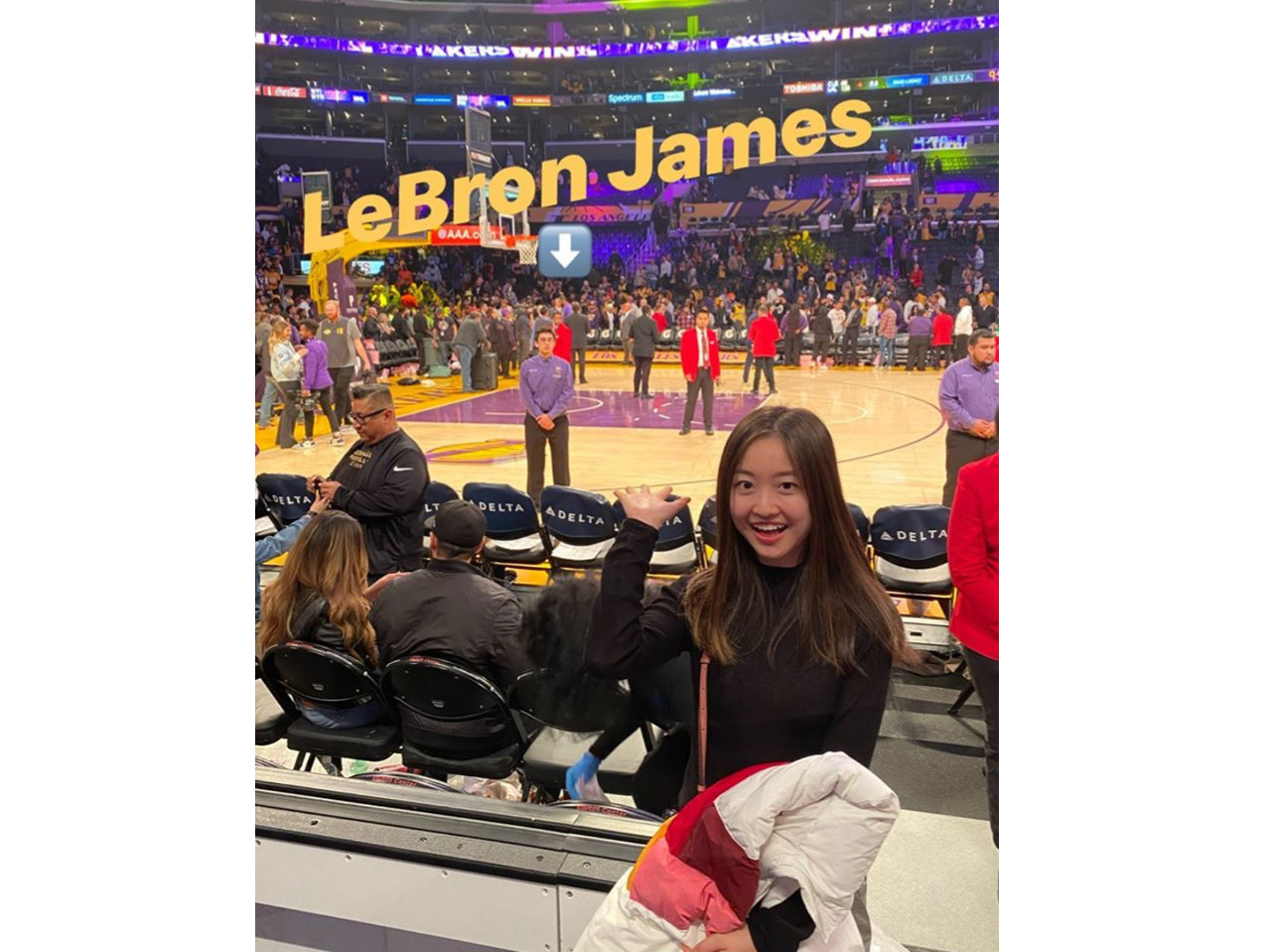 In January 2020, I traveled to Los Angeles. I watched a game of the Lakers, which is my favorite NBA team. I am so excited that they just won the champion this week!