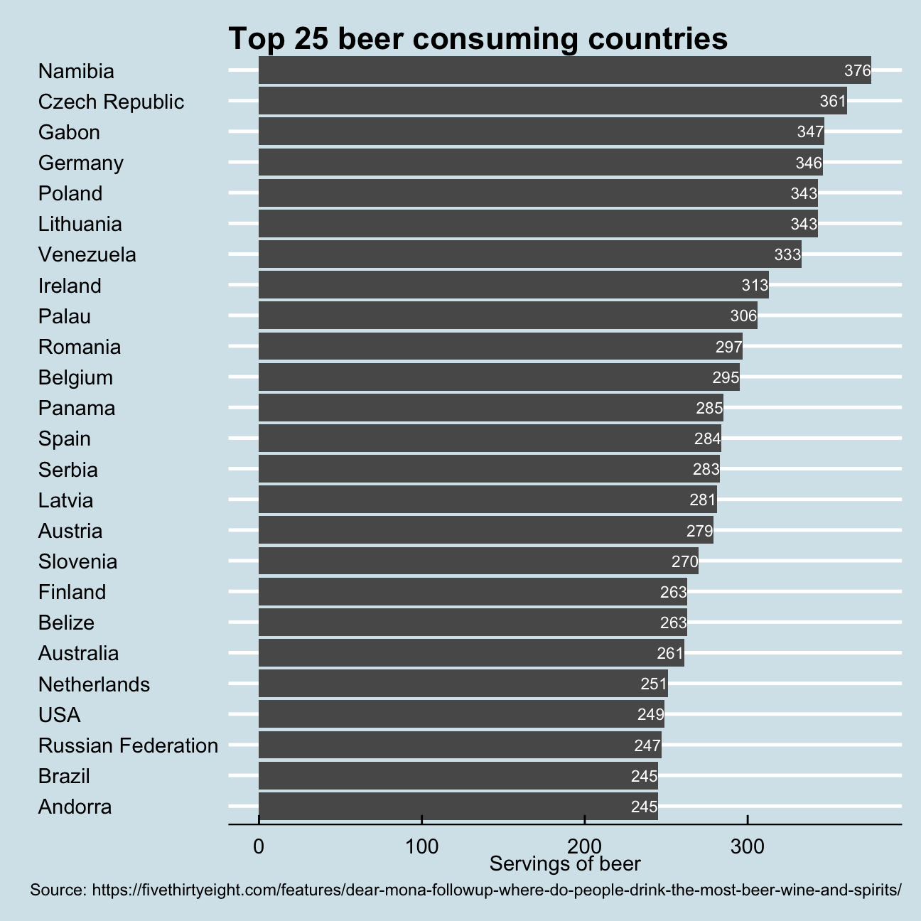 title = "Top 25 beer consuming countries",